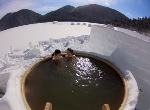ここには、世界でここだけの「氷上露天風呂」があります。