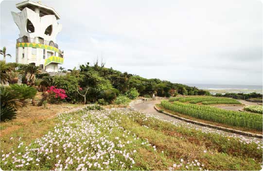 春になるとエラブユリが咲き揃い、白い花と青い海を同時に楽しめる展望公園。園内は歩道が整備され、ゆっくり散策できます。