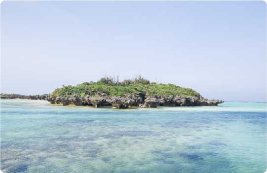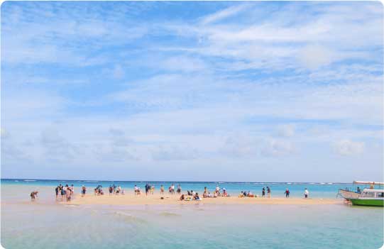 大潮の干潮時にだけ出現する“幻の砂浜”。ヨロン島の沖合い約1.5kmに位置し、グラスボートなどでアクセスできます。