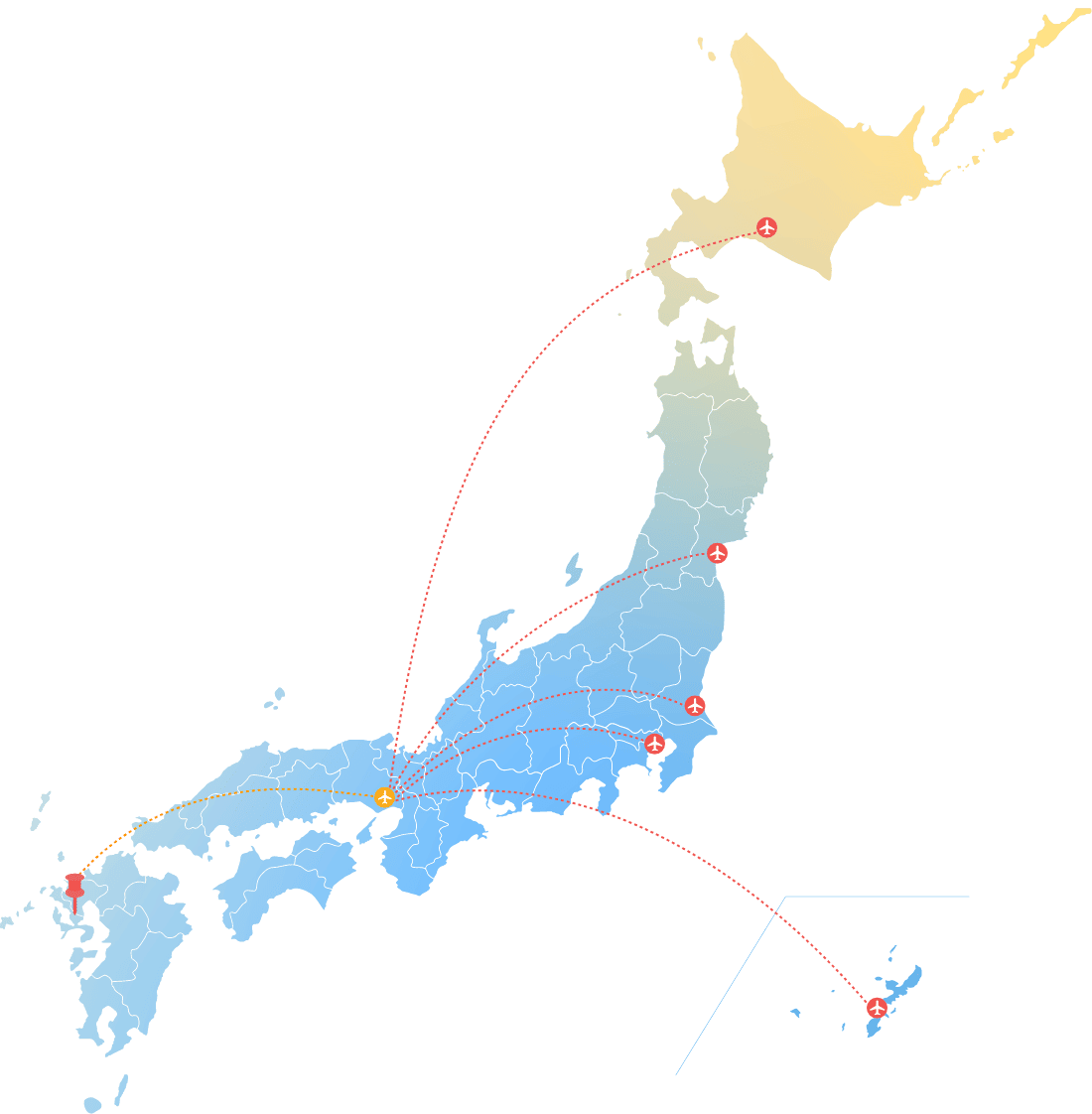 ⇔神戸(乗継)⇔ 長崎※神戸⇔長崎間は直行便です。