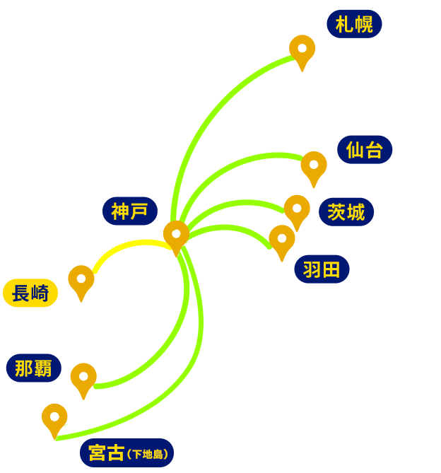 長崎空港から出かけよう。スカイマークは、長崎空港を全国7都市と結んでいます。長崎から神戸、そして全国へ。自由な空の旅をお楽しみください。
