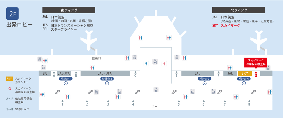 手荷物のお預けをご希望のお客様は、1階スカイマークカウンターへお越しください。