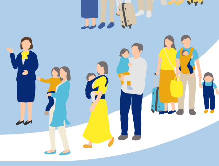 スカイマークでは、 12歳未満のお子さまをお連れの方や妊娠中の方を対象に、ご搭乗時、優先搭乗のご案内を行っております。混雑を避けてスムーズにご搭乗いただけます。
