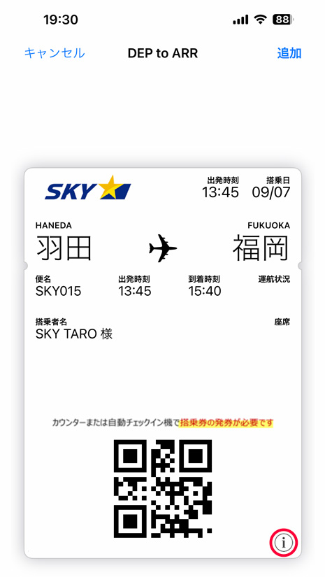 - ※出発便の時刻に変更が生じた場合、Pass上には変更後の出発時刻が表示されます。