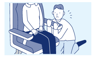 - 体が浮かないよう姿勢を低くし、通路のひじ掛けを下から抱え込む